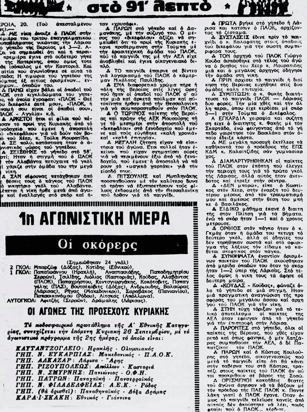 Σαν σήμερα στις 19/9/1982, η πρεμιέρα του πρωταθλήματος της περιόδου 1982-1983, βρήκε τον ΠΑΟΚ να υποδέχεται στη Βέροια, λόγω τιμωρίας από την προηγούμενη σεζόν, την ΑΕΛ ...