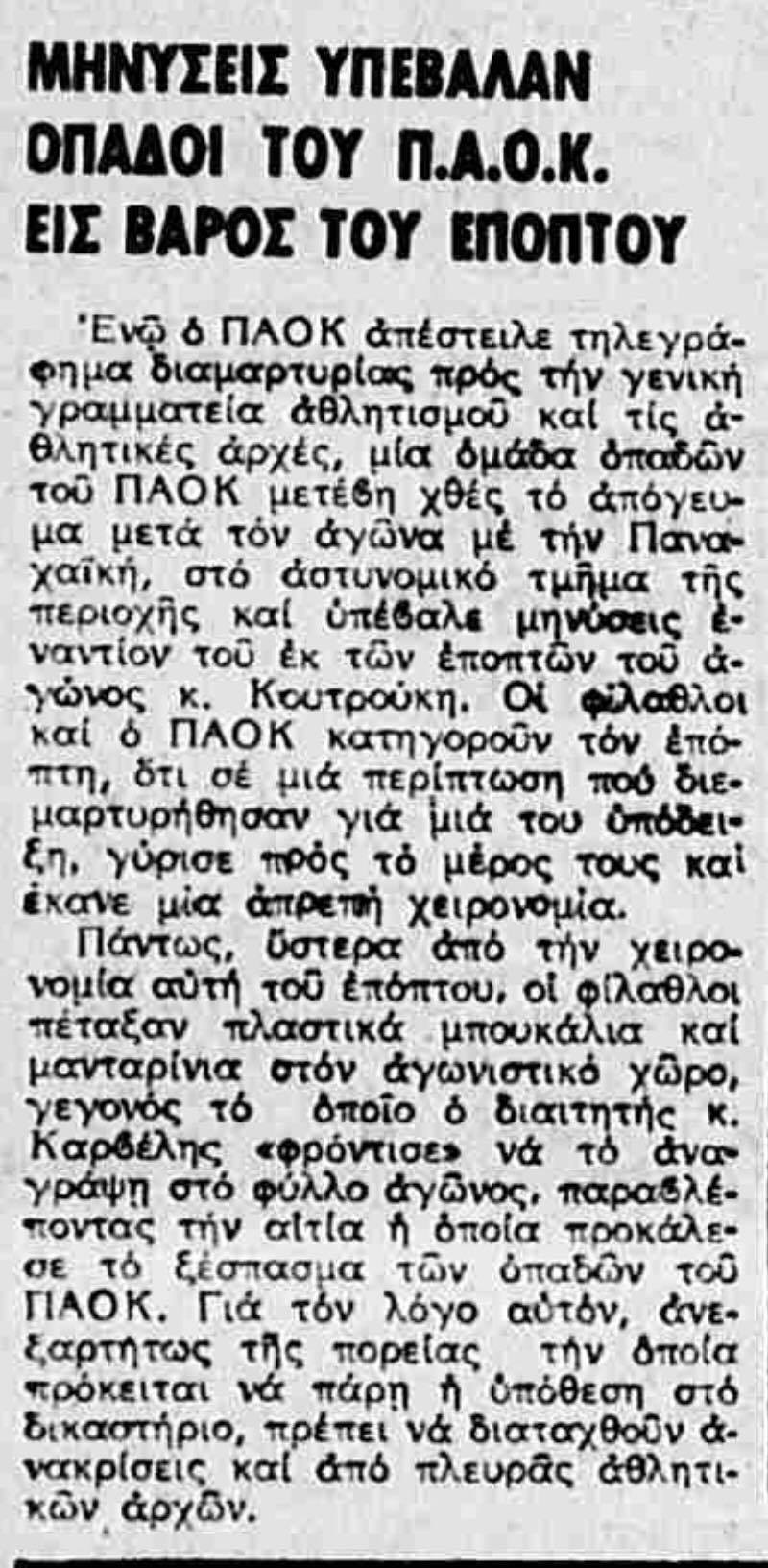 Σαν σήμερα στις 9/2/1975, ο ΠΑΟΚ υποδέχτηκε στην Τούμπα την Παναχαϊκή, σε παιχνίδι της 18ης αγωνιστικής (1ης του β' γύρου), του πρωταθλήματος της περιόδου 1974-1975 ...
