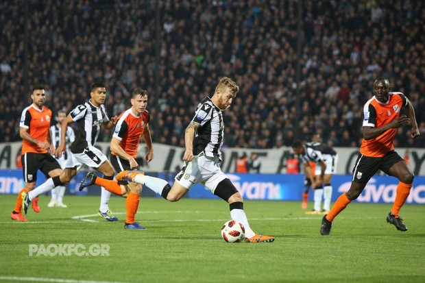 Ο ΠΑΟΚ είχε ένα πολύ μέτριο ξεκίνημα στο ματς και απειλήθηκε σε μια δυο περιπτώσεις από τους φιλοξενούμενους με τον Πασχαλάκη να σταματάει στο 3' την κεφαλιά του Μπαράλες και στο 19ο λεπτό το σουτ του Ασουμπρέ, πέρασε άουτ...